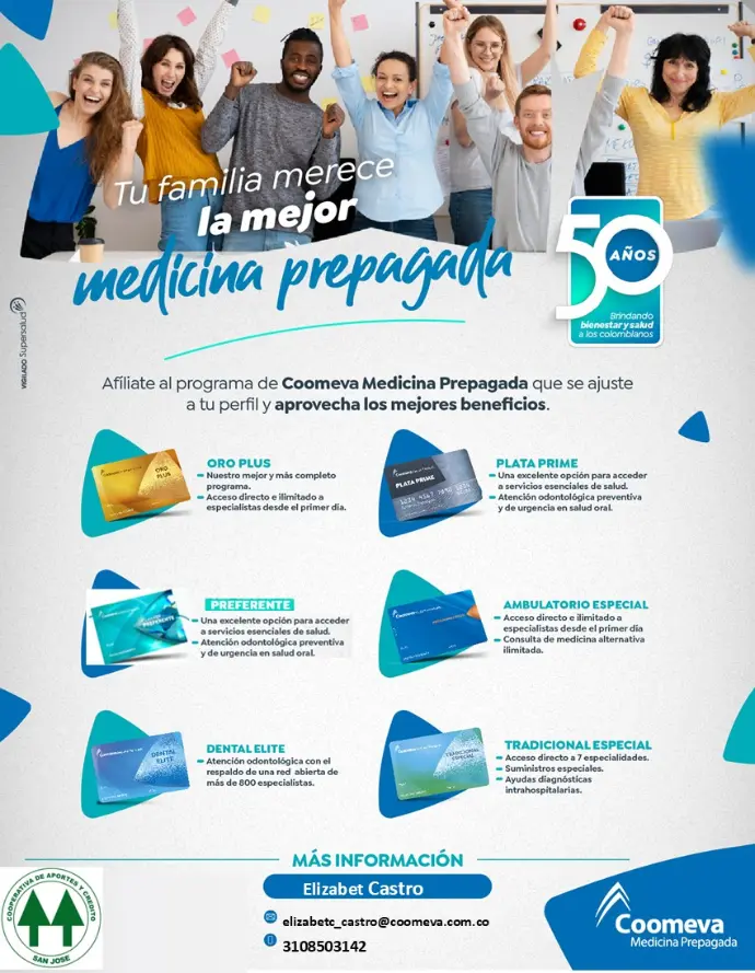 En la Cooperativa San José pensamos en tu bienestar y el de tu familia. Ahora, gracias a nuestro convenio con Coomeva Medicina Prepagada, puedes acceder a los mejores planes de salud con tarifas preferenciales, atención inmediata y una amplia red de especialistas.